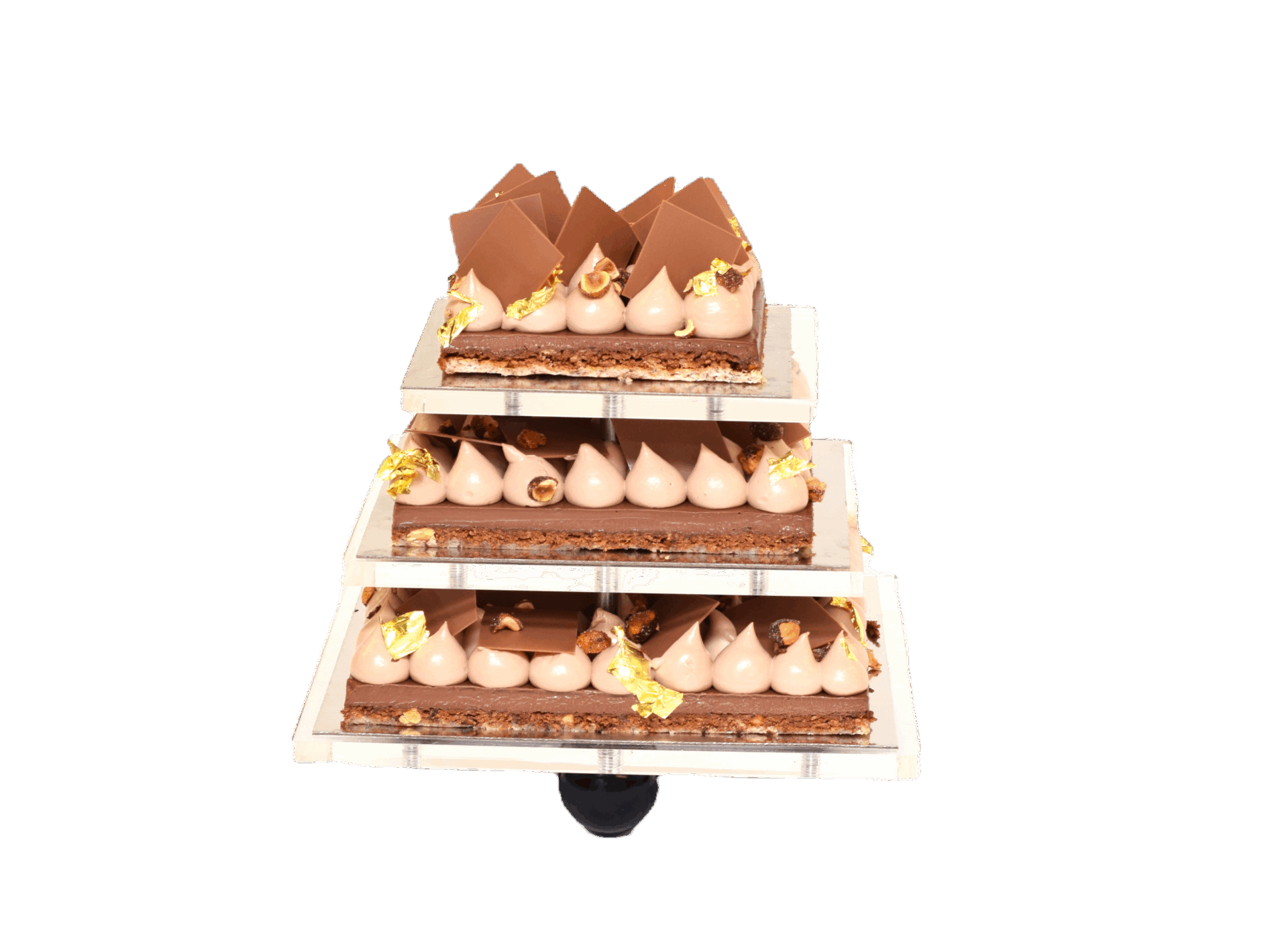 Our presentation includes a personalised service where our Chef arrives at your venue one hour prior to your dessert time. He will set up your cake tower and leave you time for photos.