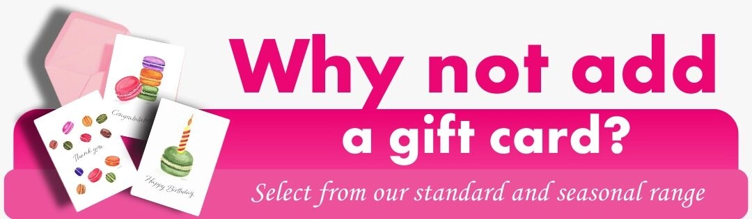 The photo including our Macaron Cake is only for demonstration purpose – the cake is not included for home delivery as too fragile. If you would like this option, please visit our click and collect – macarons section to discover the details.